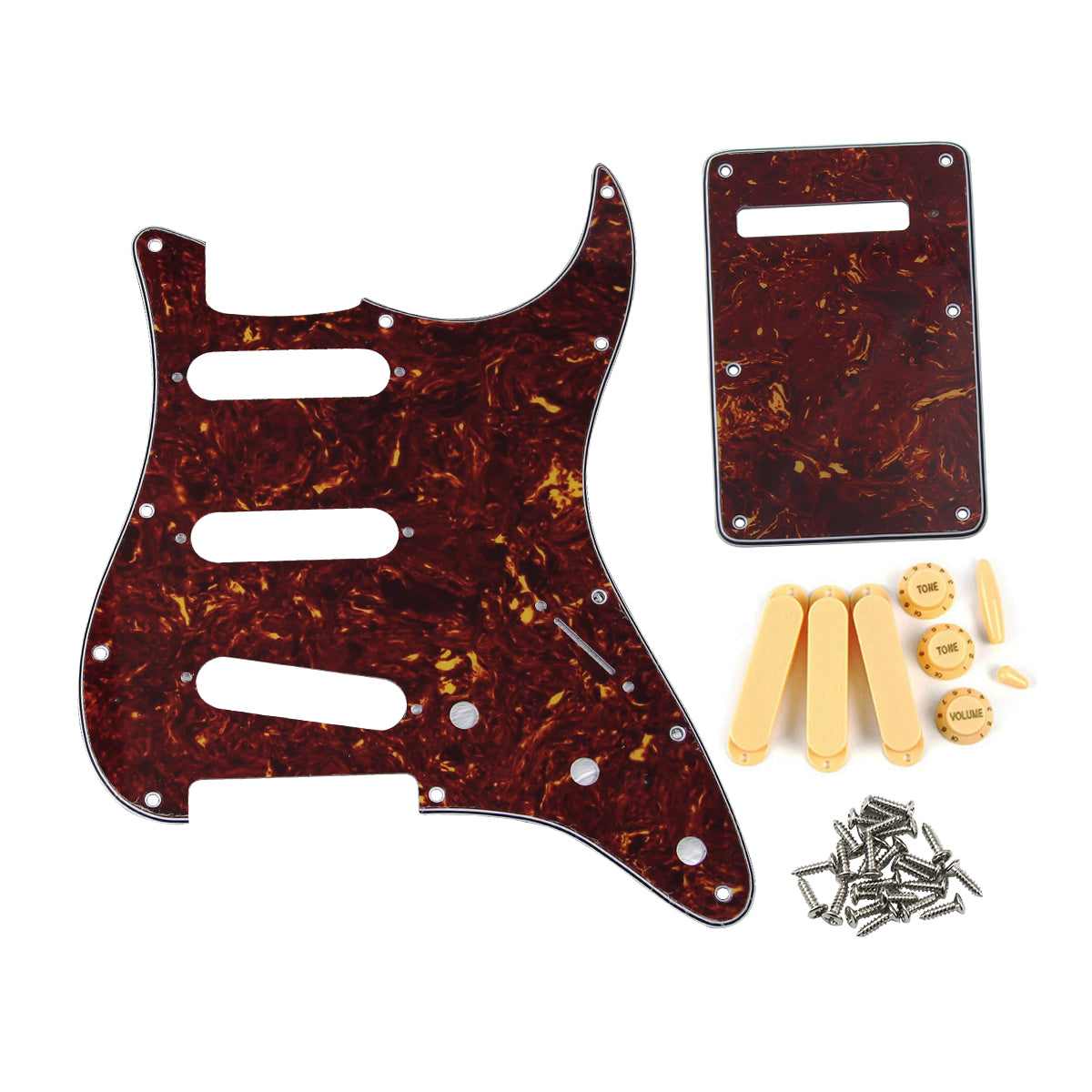 - 1 Set of gutiar pickguard+back plate+pickup covers+knobs+ tips .