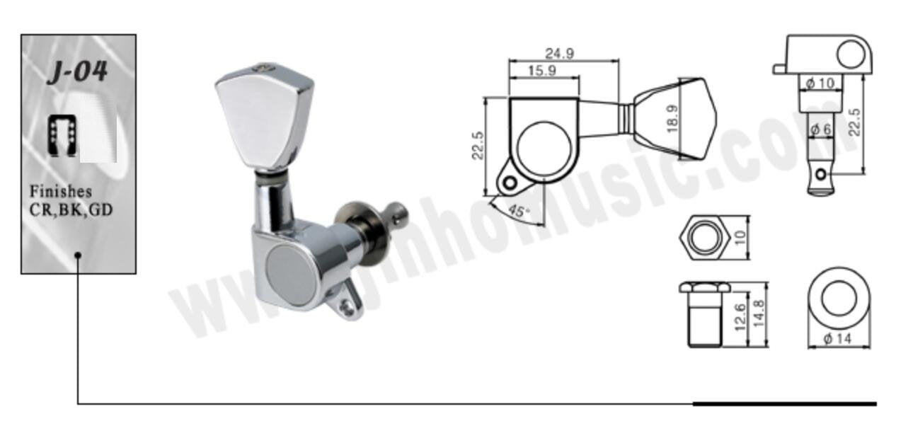 Diese Tuner passen in Kopfplattenlöcher mit einem Durchmesser von 10 mm.