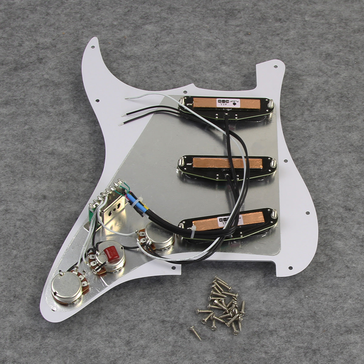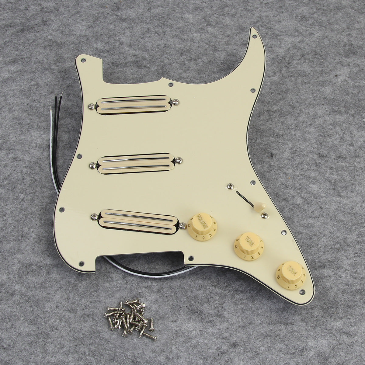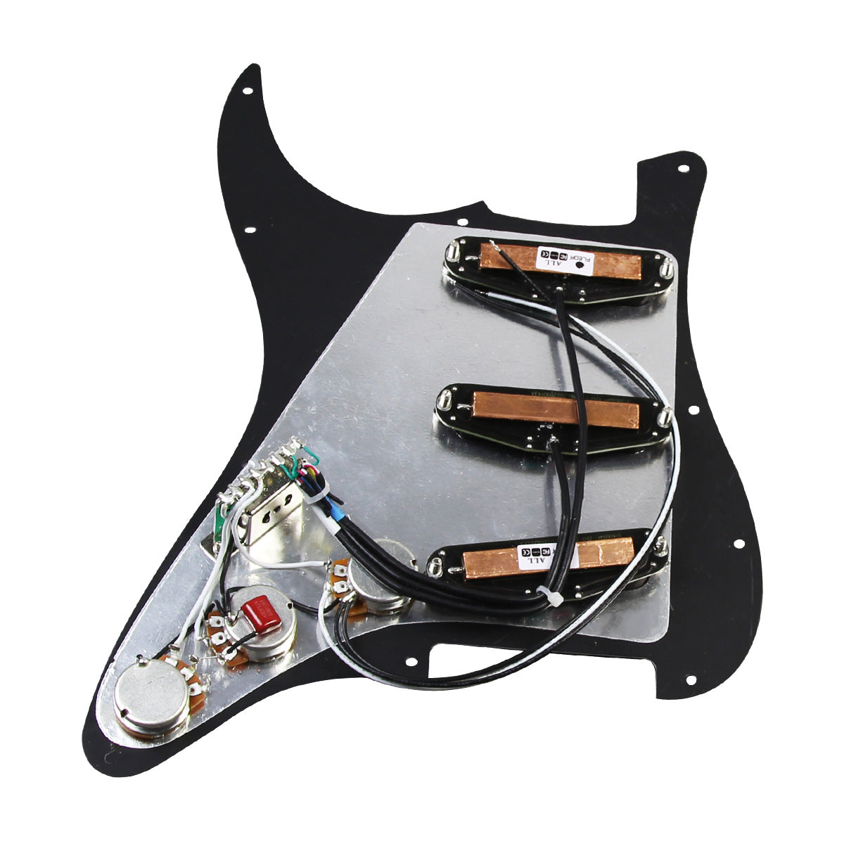 • 11 Holes SSS Pickguard Comes with Full Set of Pickups,Switch,Knobs and Prewired Circuit.