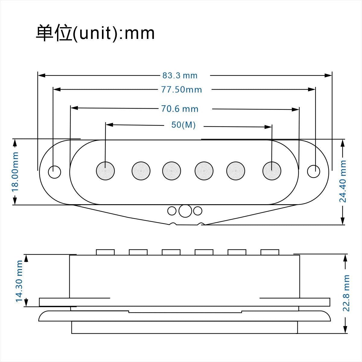 • Middle Position: Single Coil Pickups , Flat Pole Pieces, ABS Bobbin & Cover , PVC Wires .