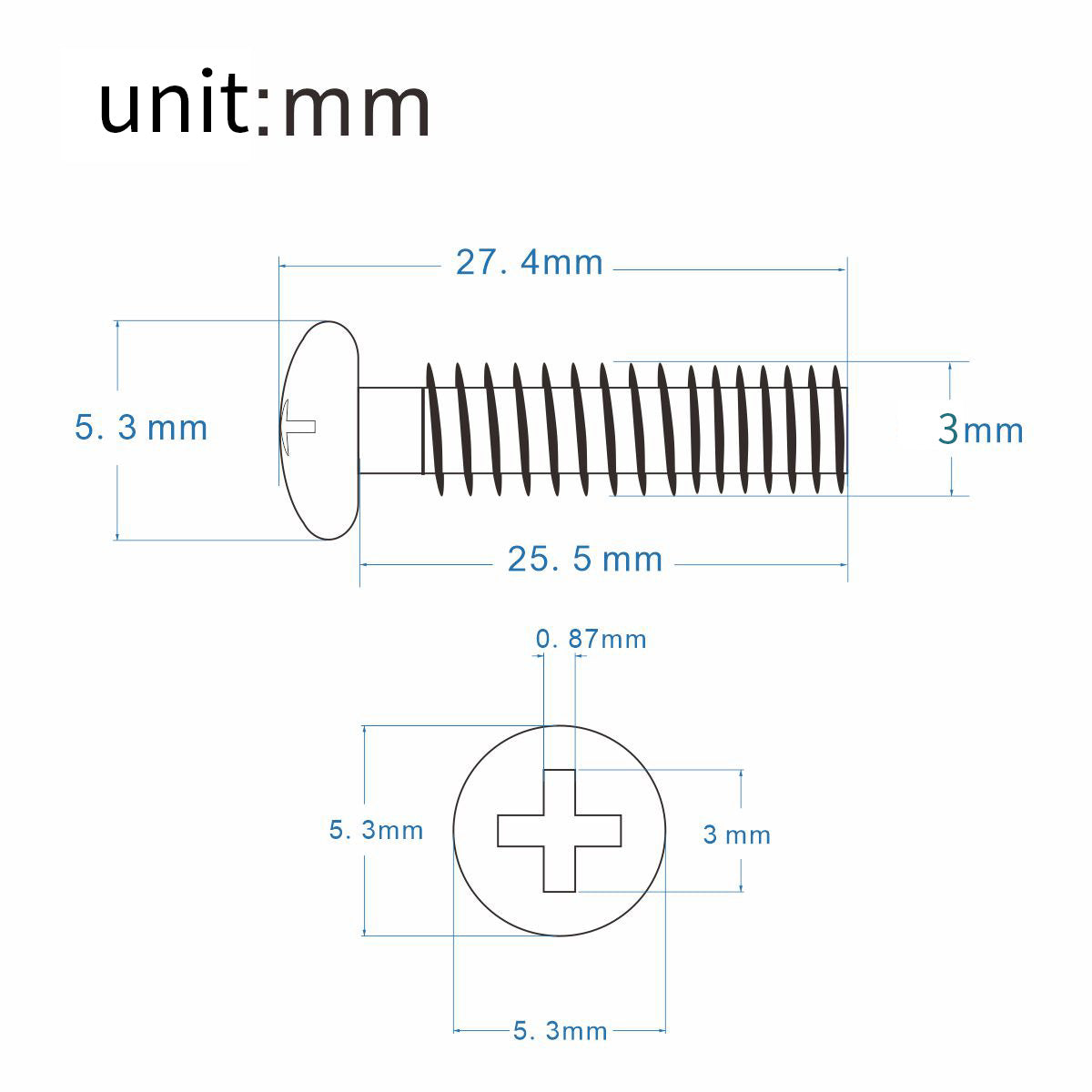 Thread Diameter: approx. 3mm/0.12 inch.