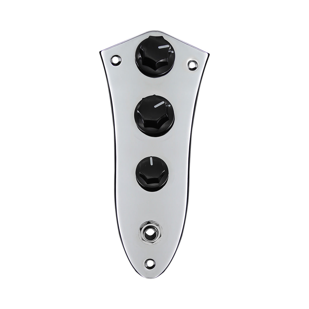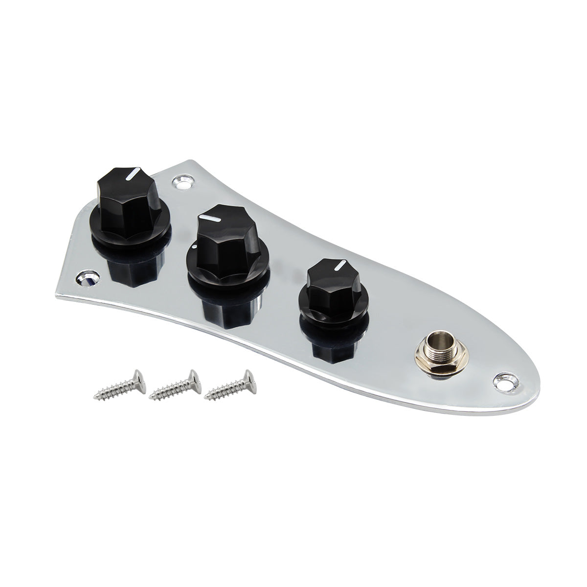FLEOR JB Bass Placa de control de interruptor precableado cromado con perillas negras para FD Jazz Bass