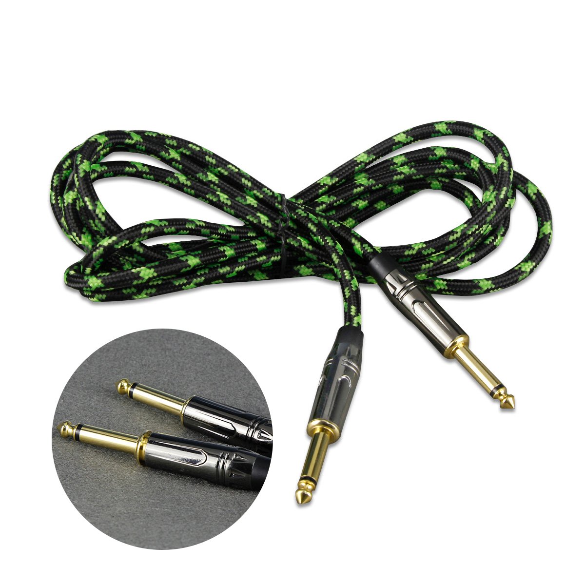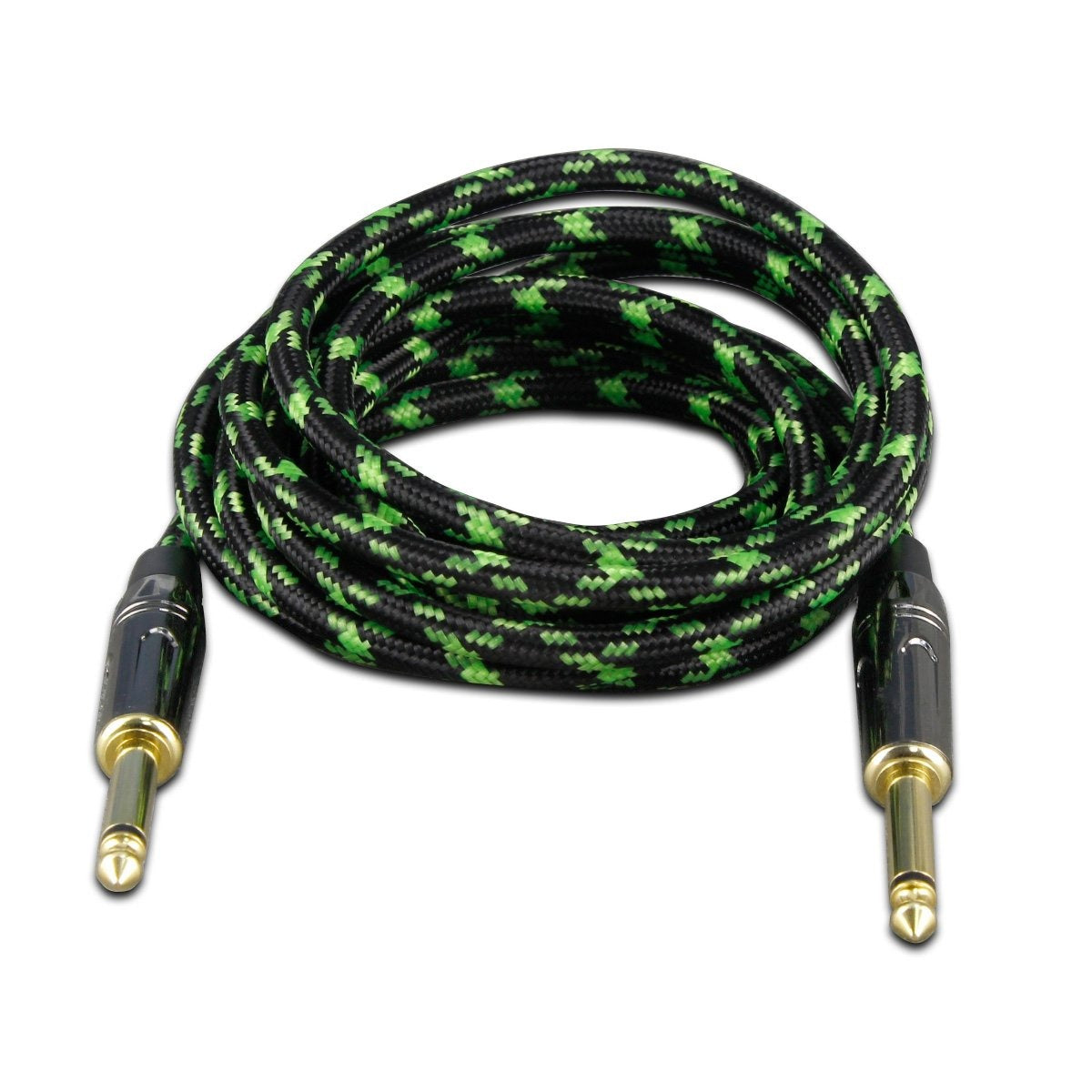 - Câble de guitare tressé en nylon professionnel avec fiches plaquées or droites à droites de 6,35 mm.
