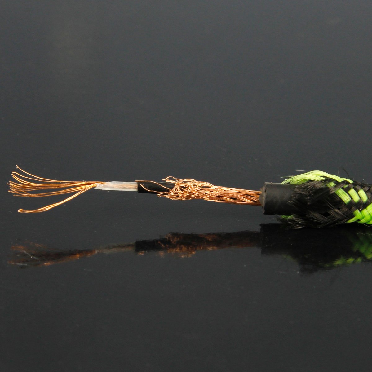 - Matériau du câble : construction 6 plis : composé d'un noyau en cuivre sans oxygène 20 AWG + diélectrique PE + PVC conducteur + blindage tressé en cuivre sans oxygène 128 + gaine extérieure en PVC + gaine tressée en nylon.