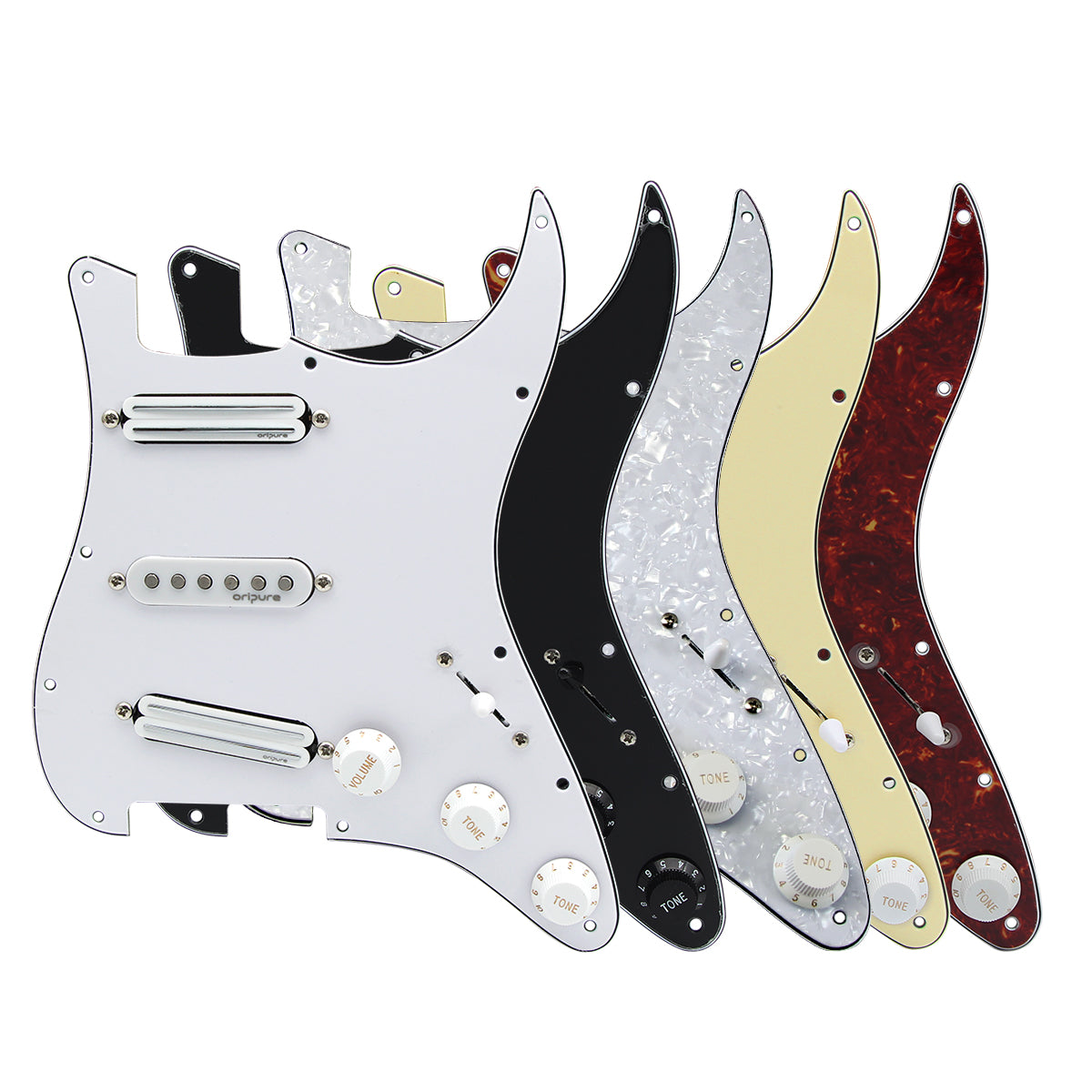 - Le pickguard SSS 11 trous est livré avec un ensemble complet de micros, interrupteur, boutons et circuit précâblé.